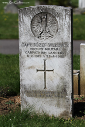Człowiek rodzi się skazany na śmierć, a umiera po to, żeby żyć wiecznie...Życie jest pełne paradoksów, niektóre zauważamy, a innych nie. Chyba największym paradoksem życia jest śmierć. Zwłaszcza ta niespodziewana, dotykająca ludzi realizujących swoje marzenia o lepszym jutrze. Z pewnością taką osobą był, jest i nadal w naszych sercach powinien być rtm. Józef Wełdycz.W prima aprilis, nudząc się okrutnie, zacząłem szukać materiałów dokumentujących działania bojowe i powojenne losy naszych starszych kolegów. Zagoglowałem - Carpathian Lancers. Jak to zwykle bywa przypadek a może ślepy los skierował mnie na stronę pewnego wrażliwego młodzieńca, zapalonego fotografa i dokumentalisty. Przebywając na cmentarzu miejskim w Grimsby natknął się na osobliwe nagrobki w jego części wojskowej, które postanowił uwiecznić. To tu spoczywa, obok swoich kolegów, rtm. Józef Wełdycz - jeden z najdzielniejszych żołnierzy Pułku Ułanów Karpackich. Człowiek, który w swojej drodze ku lepszemu stał się rybakiem. Mając niespełna 36 lat zginął tragicznie na morzu. Podczas wojny - trzykrotnie ranny, kawaler orderu Virtuti Militari, jako jeden z 2 Ułanów czterokrotnie odznaczony Krzyżem Walecznych. Ponoć aby w życiu osiągnąć jakiś cel wystarczy: upór, wytrwałość, duża odporność psychiczna i ... talent. Moim zdaniem liczy się jeszcze coś – mnóstwo szczęścia. Tego ostatniego, ten jeden raz, rotmistrzowi zabrakło. W tym miejscu warto przytoczyć słowa Seneki: „I krótkie życie jest dostatecznie długie, by przeżyć je szlachetnie”. Admin | ![]() ![]() ![]() |